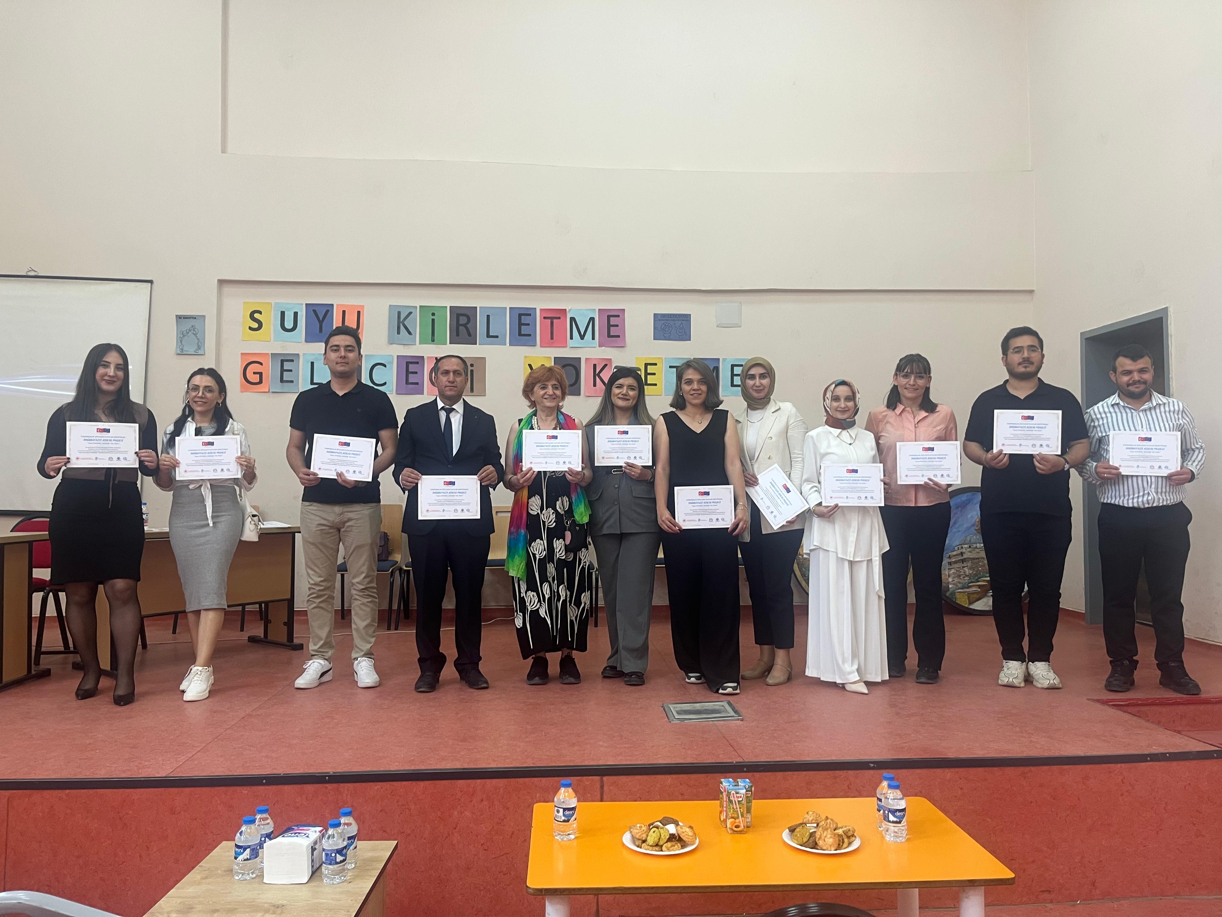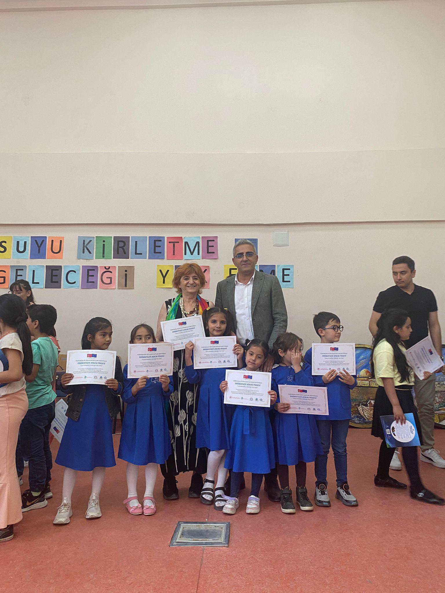 Program sonunda öğrencilere katılım belgeleri ve proje materyalleri dağıtıldı. Etkinlik kapsamında ayrıca Doğubayazıt Atıksu Arıtma Tesisi Projesi hakkında temel bilgiler paylaşılırken, çevresel yatırımlar konusunda da farkındalık oluşturuldu.